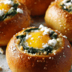 These Baked Egg Buns with Spinach and Feta bring together warm bread, creamy eggs, and flavorful greens in one delicious package. They are cozy, satisfying, and perfect for breakfast or brunch. Once you taste them, you’ll want to make them again and again because every bite feels like comfort made from scratch. Trust me, they’re worth every moment in the kitchen.