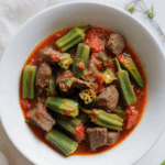 There is something deeply comforting about a pot of okra stew slowly bubbling on the stove, filling the kitchen with the warm scent of tomatoes, garlic, and tender beef. The sauce thickens gently as it simmers, wrapping every piece of okra and every cube of meat in a rich, velvety coating. Trust me, you’re going to love this. It is hearty, wholesome, and the kind of meal that makes everyone gather around the table just a little faster.