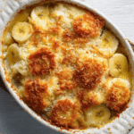 The magic lies in the contrast. The topping becomes crisp and golden with sweet flakes of toasted coconut, while the bananas underneath turn soft, creamy, and caramelized. Each bite is a warm hug of soft fruit, gooey filling, and crunchy top.