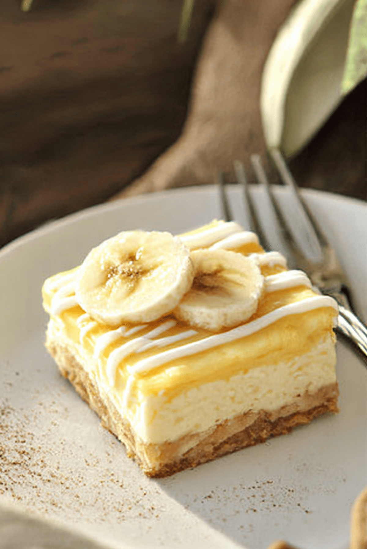 The beauty of these squares lies in their layers. You’ll get a buttery, slightly crisp crust that gives way to a creamy, custard-like cheesecake center. Each bite carries a hint of banana sweetness and a cool, velvety finish.