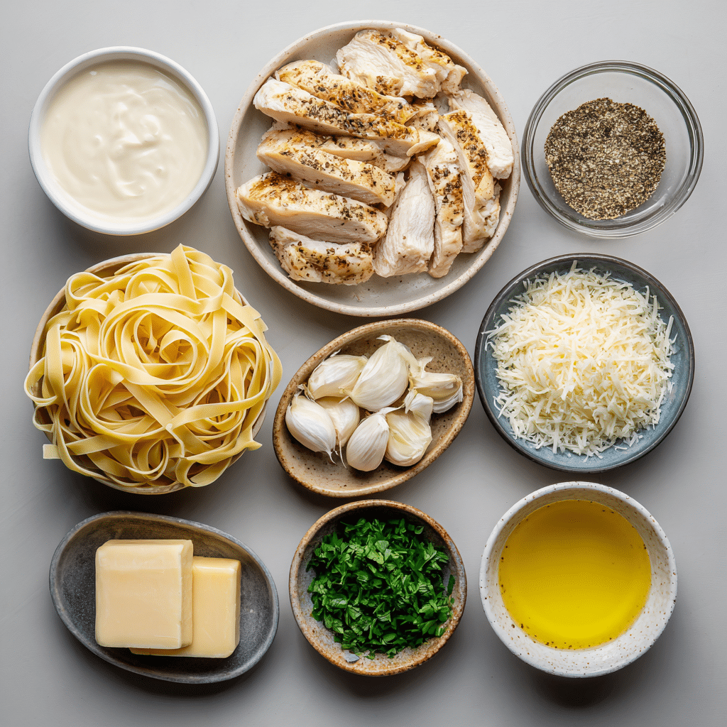 - Heavy Cream: 1 cup. Forms the base of the velvety Alfredo sauce.