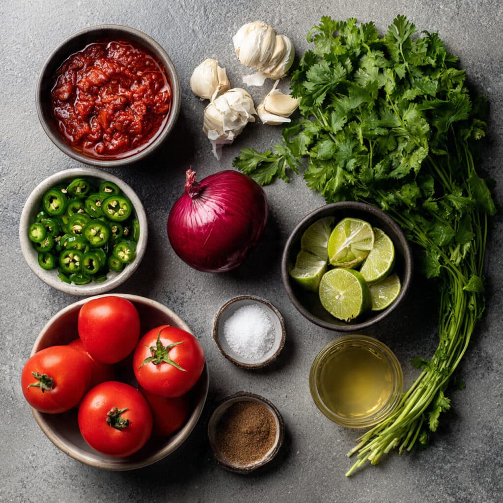- Sugar: ½ teaspoon – Rounds out the acidity from the tomatoes and lime.