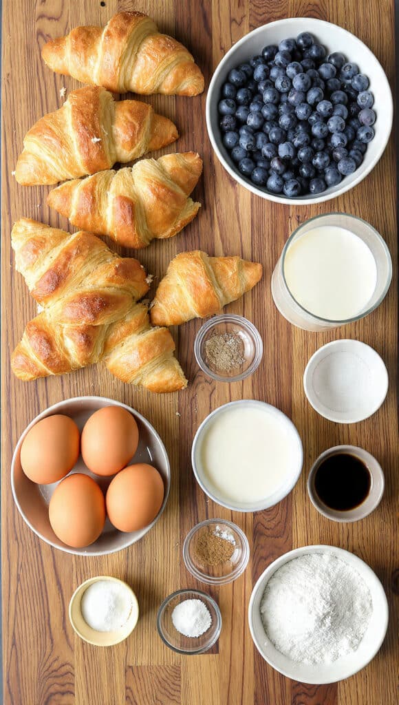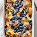 Buttery croissants baked in a rich vanilla custard with juicy blueberries. A golden and comforting breakfast casserole perfect for brunch or special mornings.