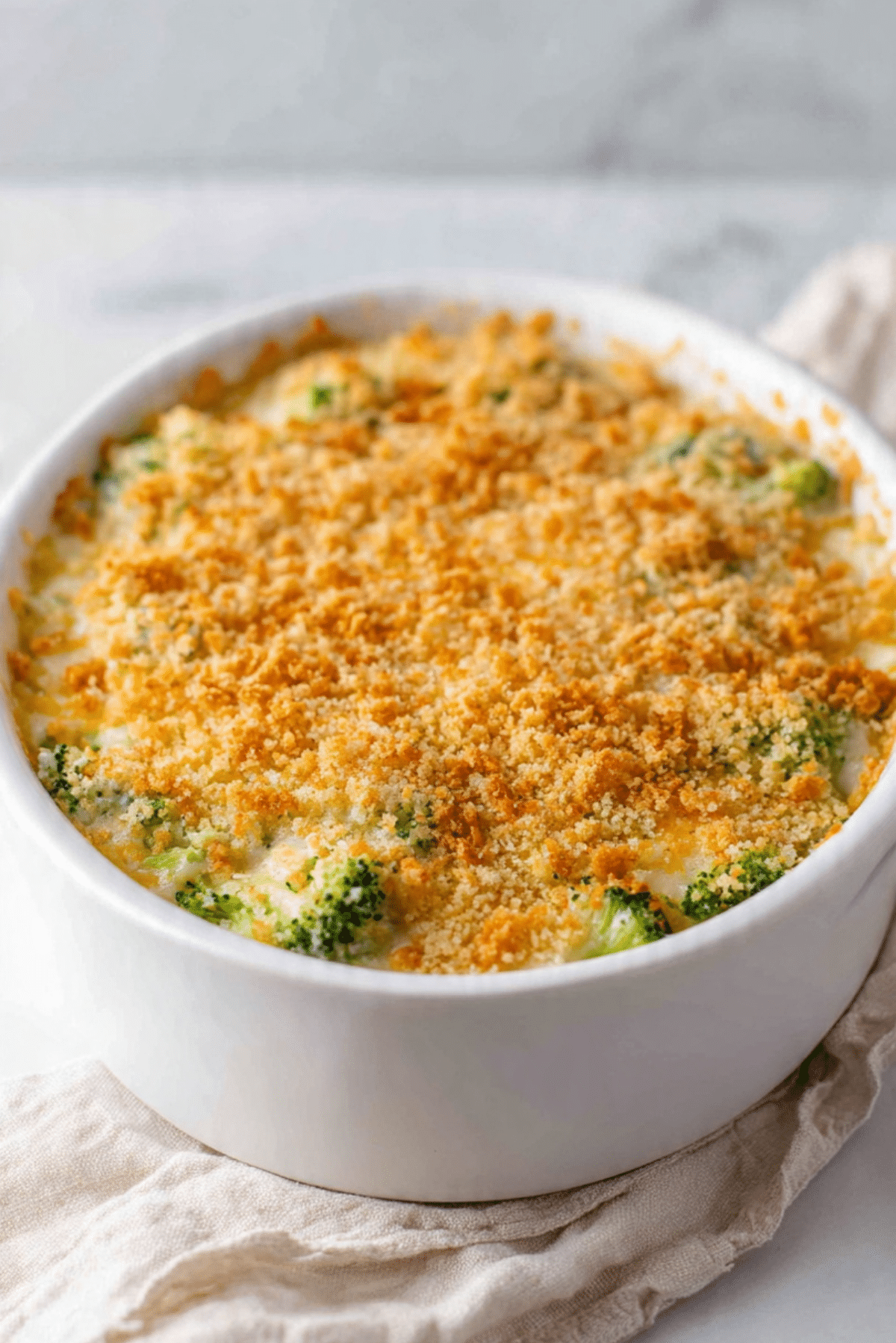 A creamy, comforting broccoli casserole baked with cheddar cheese and topped with buttery crackers for the perfect golden crunch. This classic side dish is rich, cozy, and always a crowd favorite.