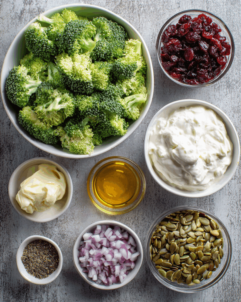 A crisp, colorful salad of finely chopped broccoli, chewy dried cranberries, and crunchy sunflower seeds tossed in a creamy, tangy yogurt-mayo dressing. Bright, refreshing, and perfect for potlucks, lunches, or make-ahead meals.
