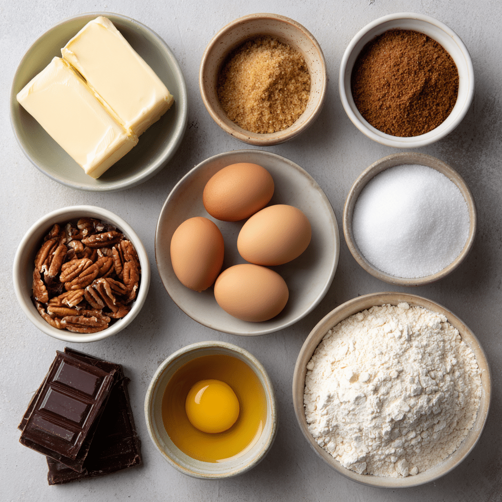 Ingredients in Brown Butter Bourbon Pecan Chocolate Chunk Blondies