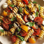 This vibrant Bruschetta Pasta Salad blends juicy cherry tomatoes, fresh basil, creamy mozzarella, and al dente rotini, all tied together with a tangy balsamic glaze. Perfect for picnics, potlucks, or a quick summer lunch.