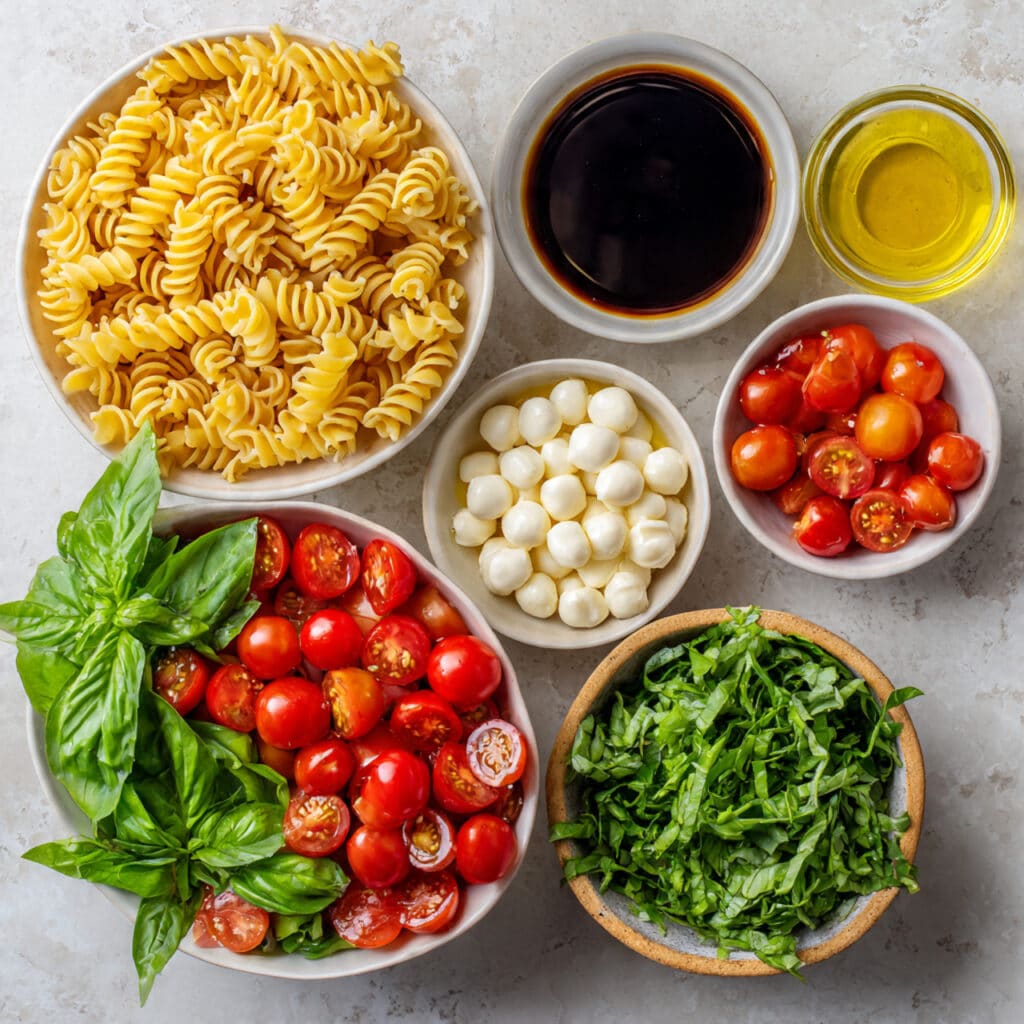 This salad shines with contrasts: chewy pasta, soft mozzarella, juicy tomatoes, and the leafy brightness of basil. The flavor balance is sweet, tangy, creamy, and herby all at once. The balsamic glaze adds just the right touch of richness to bring it all together.