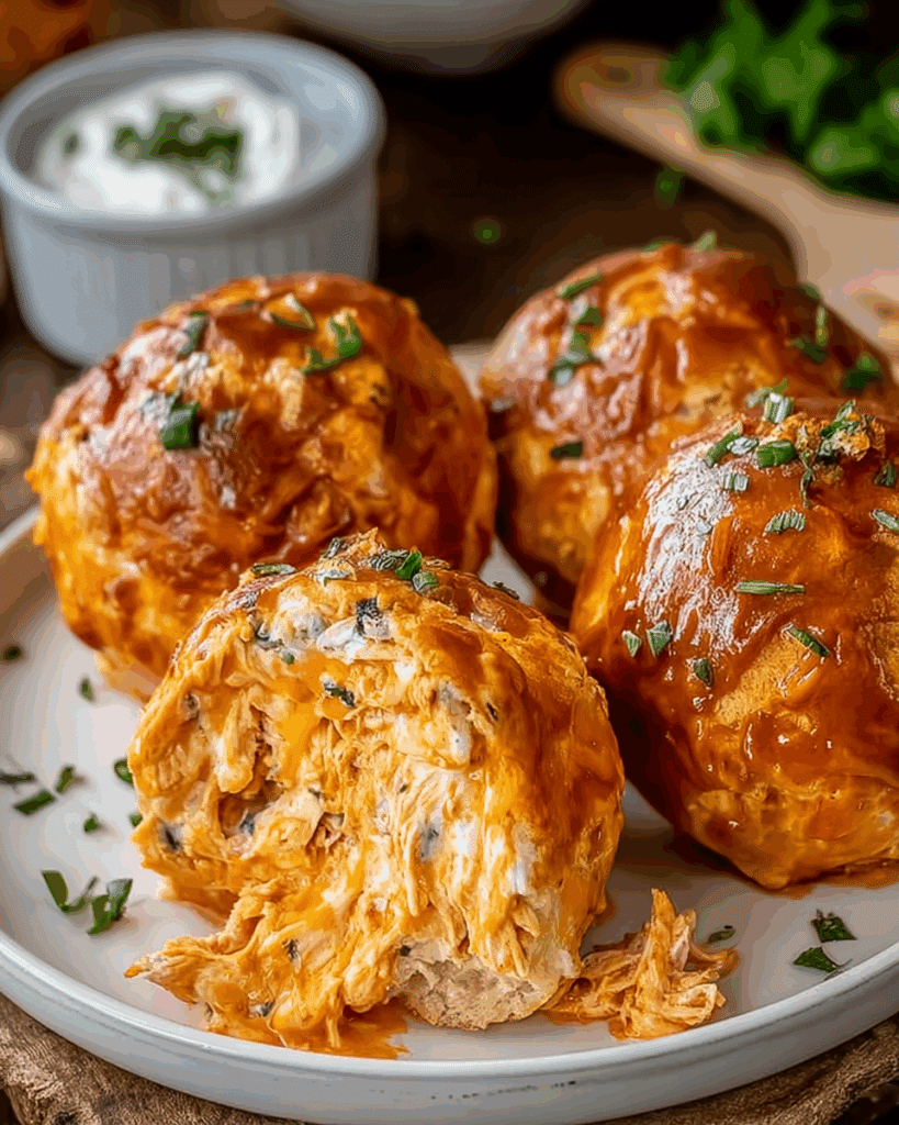 Golden, crispy, and bursting with creamy buffalo flavor — these Buffalo Chicken Bombs combine tender chicken, tangy hot sauce, and melty cheese wrapped in soft dough for the ultimate party or game-day snack.