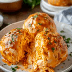 Golden, crispy, and bursting with creamy buffalo flavor — these Buffalo Chicken Bombs combine tender chicken, tangy hot sauce, and melty cheese wrapped in soft dough for the ultimate party or game-day snack.