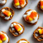 There is something about sweet and salty treats that instantly brings out the kid in all of us, and these little bites do exactly that. Crunchy pretzels, creamy white chocolate, and cheerful candy corn come together in one colorful, irresistible snack. They are playful, festive, and honestly so easy that you might find yourself making them more than once during the season. Trust me, you’re going to love this.