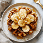 Warm, buttery, and unapologetically indulgent, this Caramelized Coconut Banana Bread Waffle French Toast is where breakfast dreams and dessert desires finally meet. Imagine golden banana bread waffles kissed by a rich caramel coating, drizzled with maple syrup, and dusted with toasted coconut. It’s a comforting twist that turns a simple morning meal into something truly unforgettable.