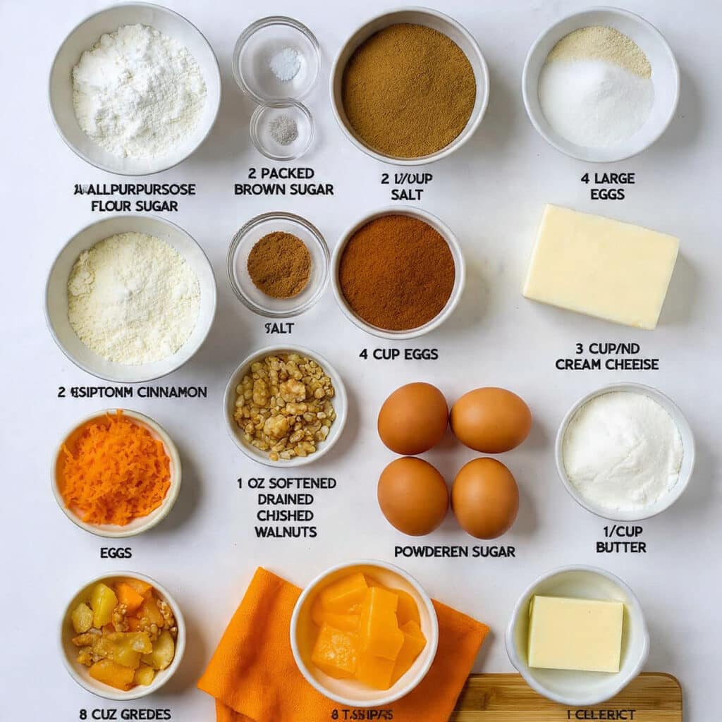 Ingredients in Carrot Sheet Cake with Cream Cheese Frosting