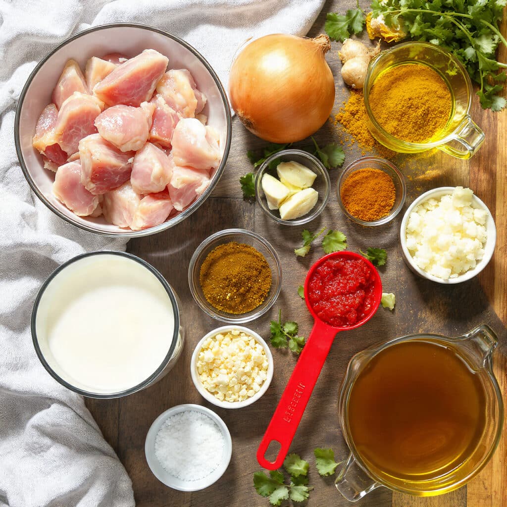 - Chicken Thighs or Boneless Skinless Chicken Pieces: 1½ pounds, cut into bite-sized pieces. The main protein that turns tender and juicy in the curry.