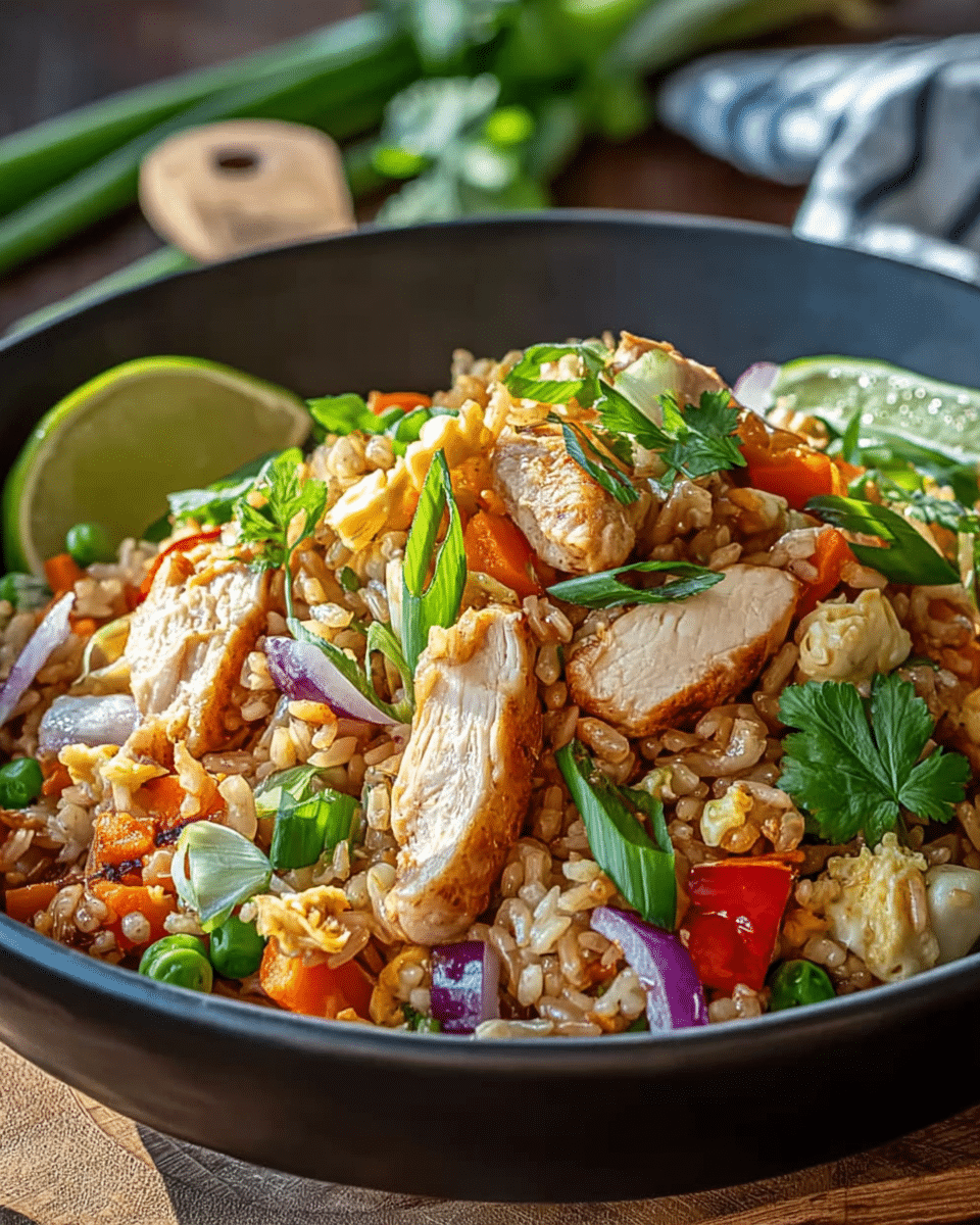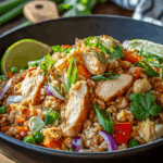 A vibrant fusion of comfort and freshness, this Chicken Fried Rice Salad combines golden fried rice, juicy chicken, crisp vegetables, and a tangy sesame dressing for a wholesome meal that’s perfect warm or chilled.