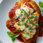 Crispy breaded chicken topped with rich marinara sauce and melted mozzarella, finished in the oven for a golden bubbly finish. This comforting Italian American classic is perfect for serving over pasta or enjoying on its own.