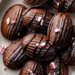 Keywords: chocolate peppermint madeleines, holiday madeleines, chocolate shell cakes, peppermint dessert, festive baking