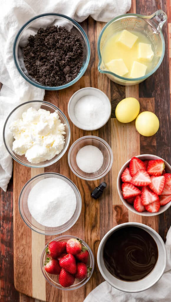 Ingredients You Will Need For These Chocolate Strawberry Cheesecakes