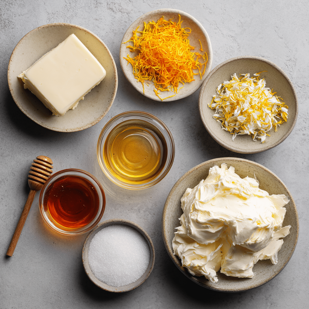 - Combine Ingredients: In a mixing bowl, add softened butter, honey, powdered sugar, citrus zest, orange blossom water, and a pinch of salt.