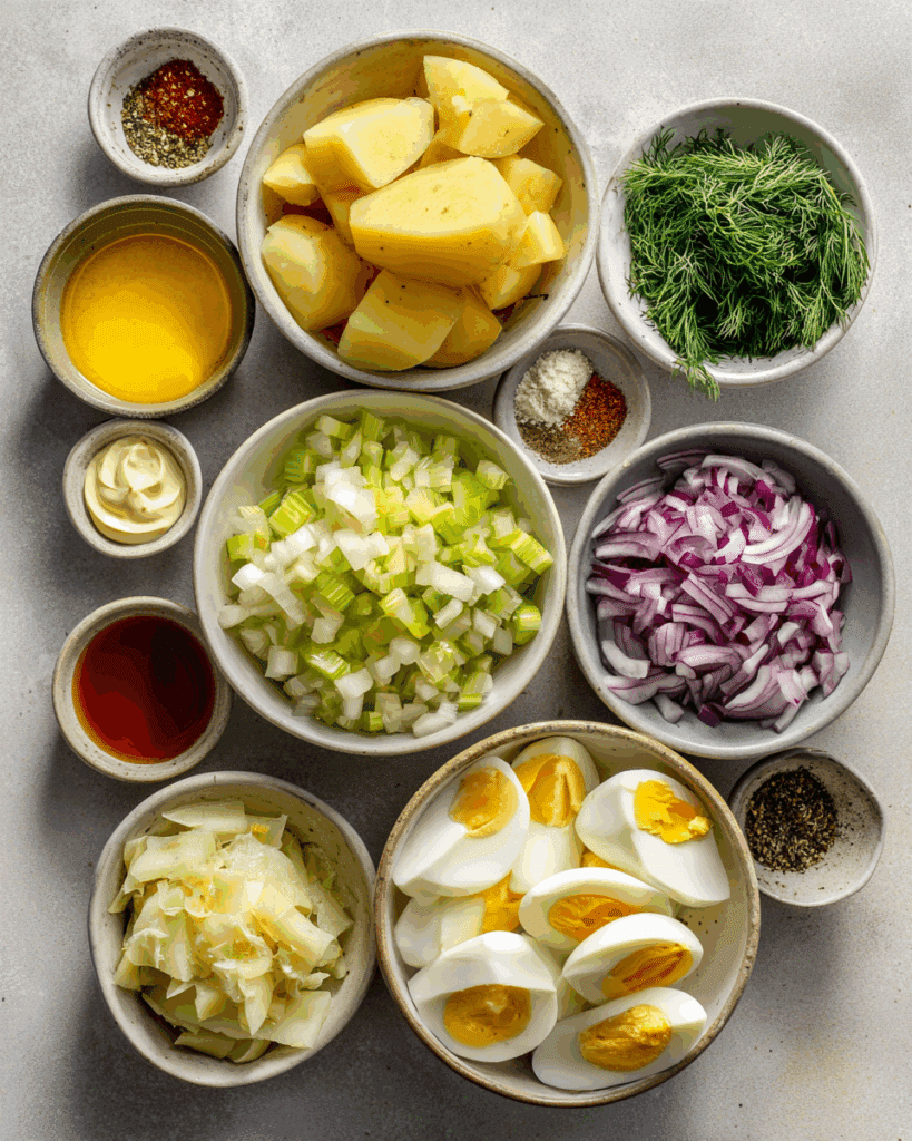 Yukon Gold Potatoes: These beauties have a natural buttery flavor and hold their shape even after boiling, giving your salad that perfect bite.
