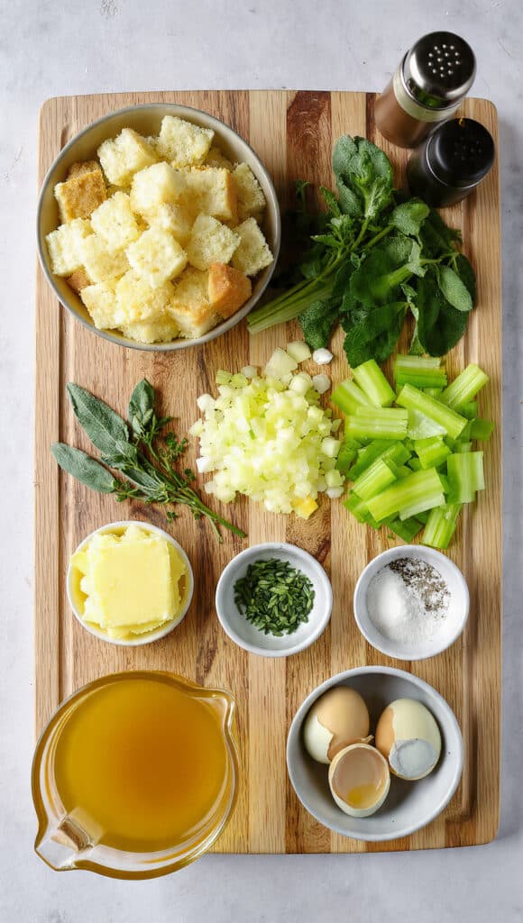 Keywords: sage and onion dressing, vegetarian stuffing, holiday side dish, Thanksgiving dressing, bread stuffing