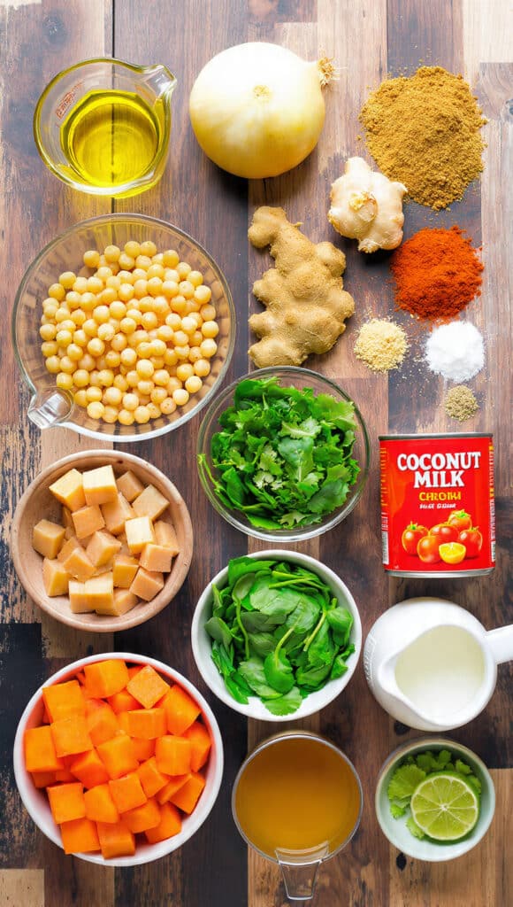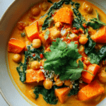 A creamy and comforting coconut chickpea and sweet potato curry simmered with warm spices, tender vegetables, and fresh spinach. This plant-based dish is rich, satisfying, and perfect for weeknight dinners or meal prep.