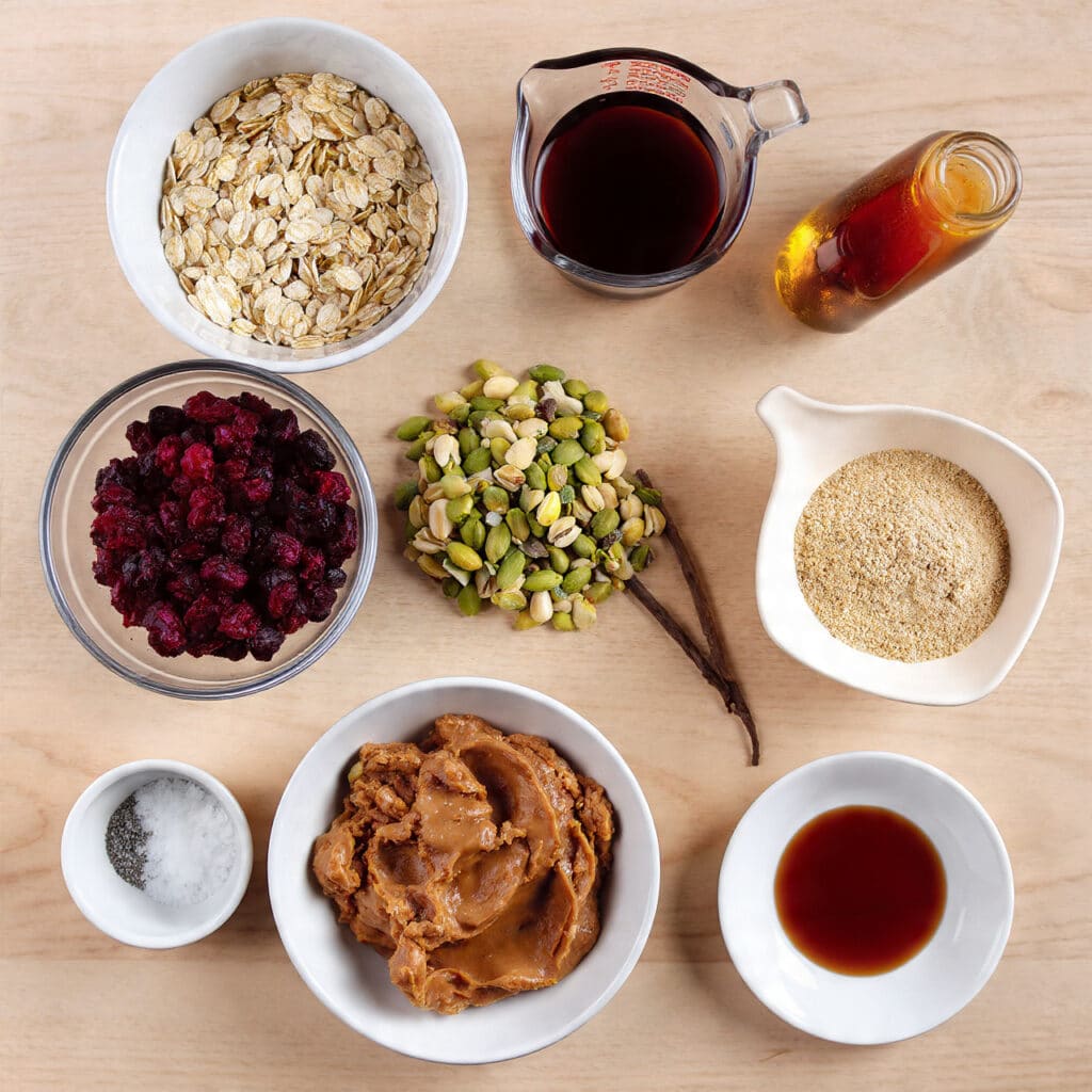 Ingredients in Cranberry Pistachio Oatmeal Energy Bites