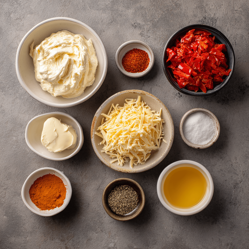 Pimentos: These sweet, mild peppers bring vibrant red color and a subtle sweetness that’s key to this dip’s character.
