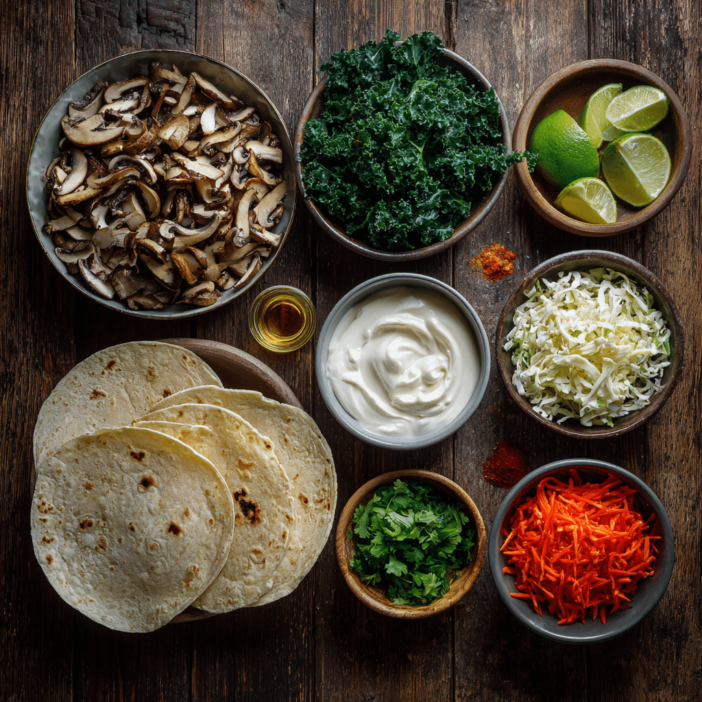 - Finishing Touches: Layer each tortilla with mushrooms, then top with the kale slaw.