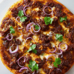 The first bite gives you crunch from the crust, then tender, spiced beef melts in your mouth. The cheese softens the bold spices, while red onion adds a crisp snap. As it cools slightly, the flavors deepen even more. Let me tell you, it is worth every bite.