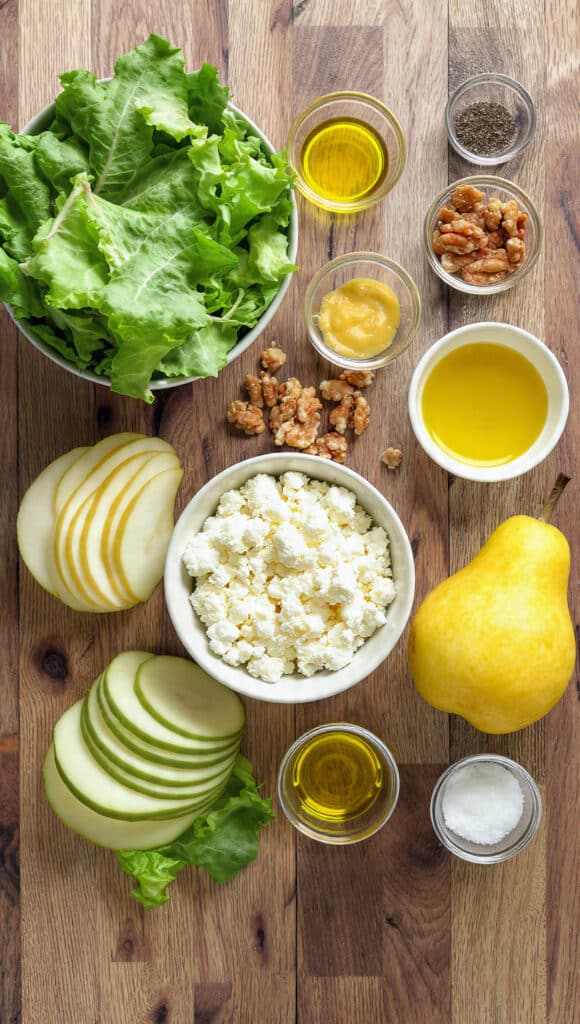 Each forkful delivers crunch from the lettuce and walnuts, creaminess from the cheese, and juicy sweetness from the pear. The vinaigrette ties it all together with a bright, slightly sweet finish that lingers just enough.