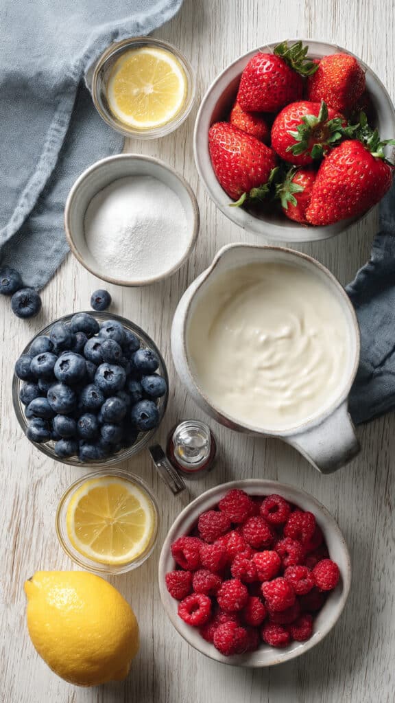 There is something almost magical about a bowl of fresh berries topped with silky lemon cream. The colors alone stop you in your tracks, deep red strawberries, vibrant blueberries, delicate raspberries, all glistening and juicy. Then comes that spoonful of pale, citrusy cream cascading gently over the fruit. It is light, refreshing, and just indulgent enough. Trust me, you are going to love this. It feels fancy, but it is secretly one of the easiest desserts you will ever make.