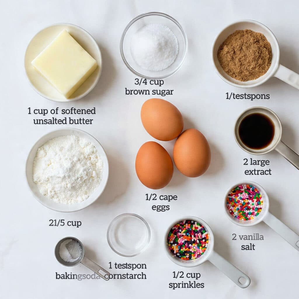 - Rainbow Sprinkles: 1/2 cup (plus more for topping). The signature fun touch.