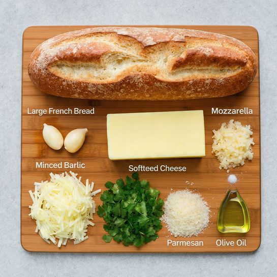 - French Bread: 1 large loaf, sliced lengthwise. Acts as the perfect vessel for all that buttery, cheesy goodness.
