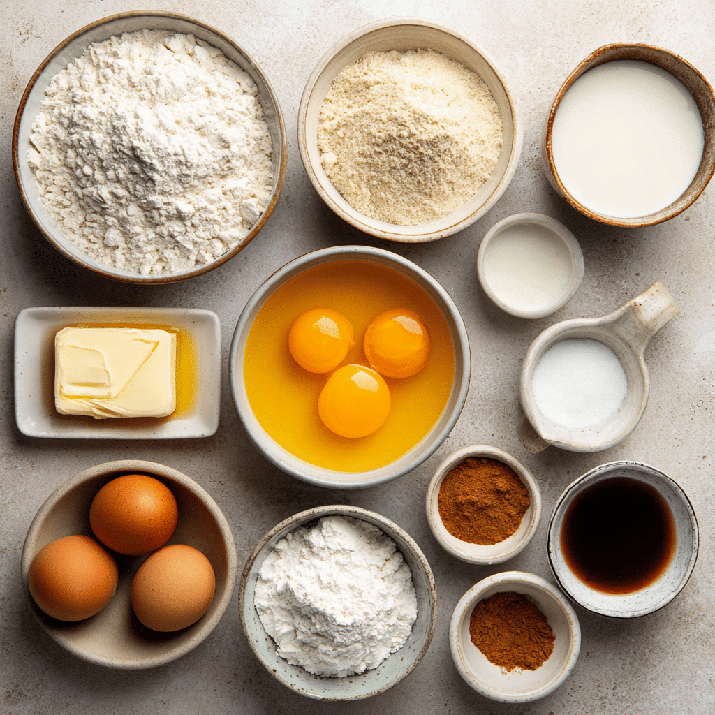 - Whole milk: 1 cup, keeps the batter smooth and tender.