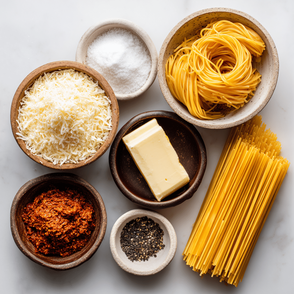 Cacio e Pepe, which means “cheese and pepper” in Italian, hails from the Lazio region, most famously Rome. Traditionally made with just pasta, Pecorino Romano, and black pepper, it’s the epitome of simple elegance. Gochujang, on the other hand, is a staple in Korean cuisine. It’s a fermented chili paste made with glutinous rice, fermented soybeans, and red chili powder, bringing heat, depth, and a hint of sweetness. This dish marries these two culinary worlds in a beautiful, delicious harmony.