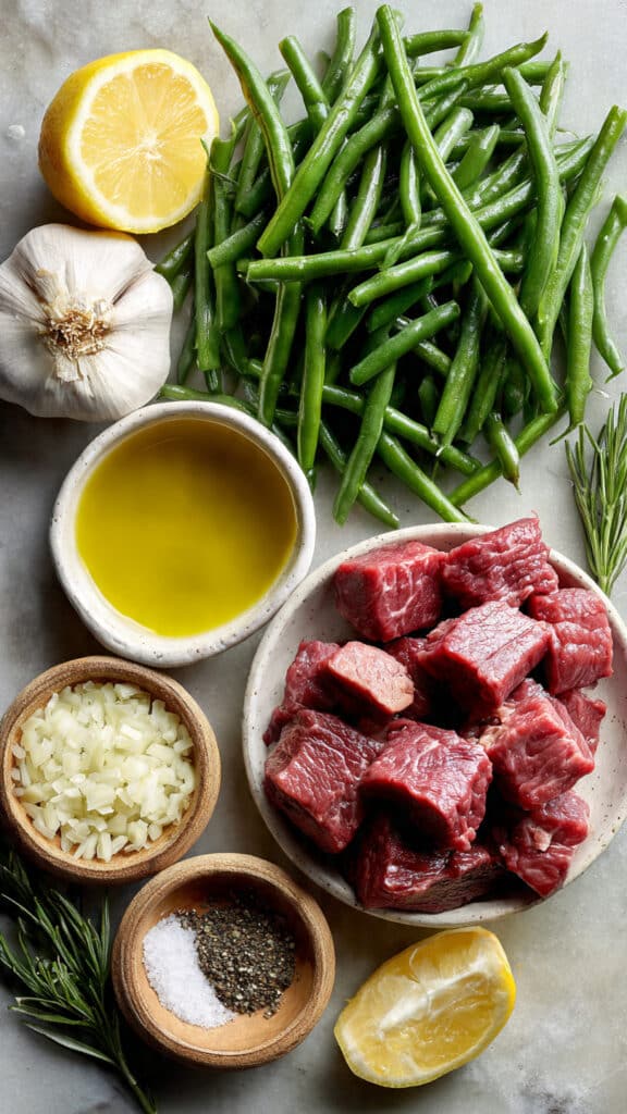 Tender sirloin steak bites sautéed with fresh green beans, garlic, and bright lemon juice, all cooked in one skillet for a quick and satisfying meal.