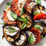 Smoky grilled eggplant layered with juicy tomatoes, creamy fresh mozzarella, and fragrant basil, all drizzled with sweet balsamic glaze. This easy, vibrant dish is perfect for summer dining.
