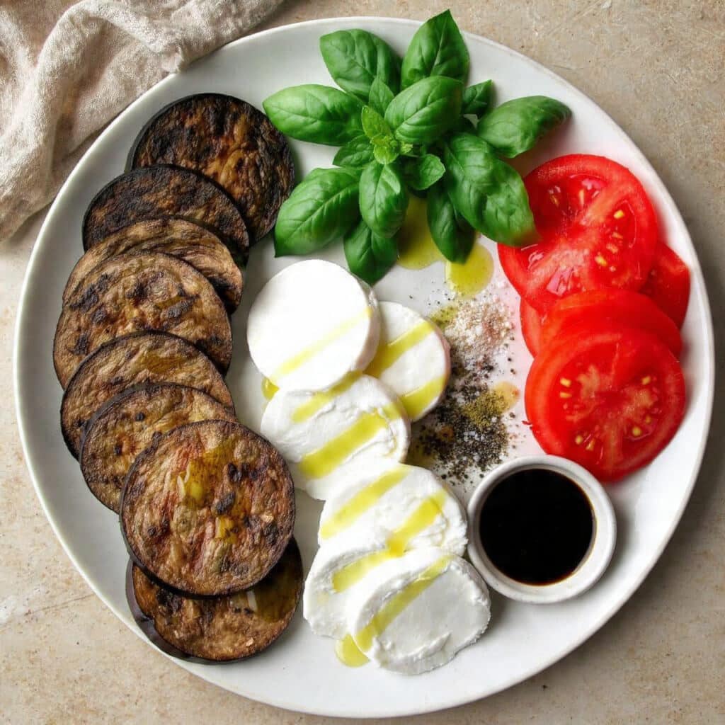 - Layering While Hot: Let grilled eggplant cool a bit to avoid wilting the basil and melting the mozzarella too much.