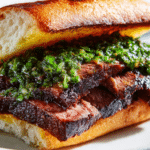 I still remember the first time I stumbled upon picanha at a street market in southern Brazil. It wasn’t just a cut of meat, it was the star of the grill, always sizzling and always gone too fast. Inspired by those unforgettable flavors, this sandwich was born—bringing together the simplicity of good bread, the richness of grilled beef, and the vibrant kick of chimichurri. It’s the kind of recipe that turns a regular lunch into a moment worth savoring.