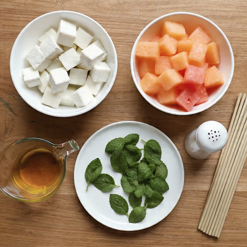 Ingredients in Halloumi and Melon Skewers