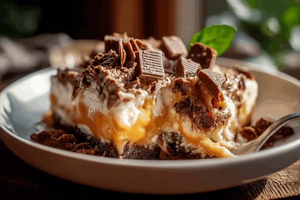It all begins with a simple chocolate cake, but this one has a little secret inside. Imagine warm chocolate cake soaked in rich caramel, topped with fluffy whipped cream, and sprinkled with bits of crunchy Heath bars. Each bite gives you a mix of smooth and sweet with that toffee crunch that makes you close your eyes in delight. Trust me, you’re going to love this one.