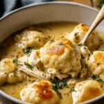 A comforting classic filled with tender chicken, fluffy dumplings, and a creamy, savory broth that warms you from the inside out. Perfect for cozy family dinners or chilly nights when you crave something hearty and homemade.