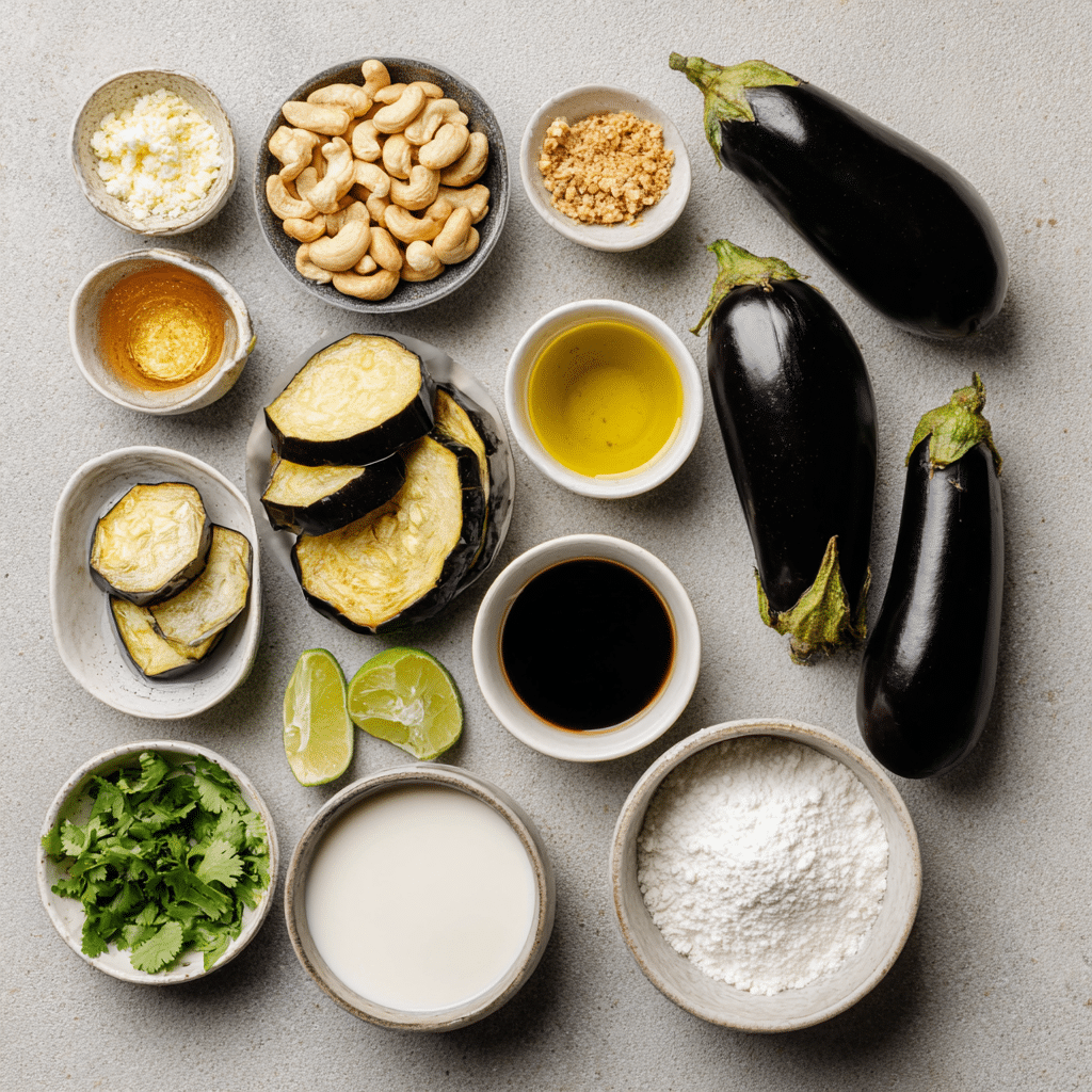 Ingredients in Honey-Garlic Eggplant Dippers with Cashew-Lime Cream