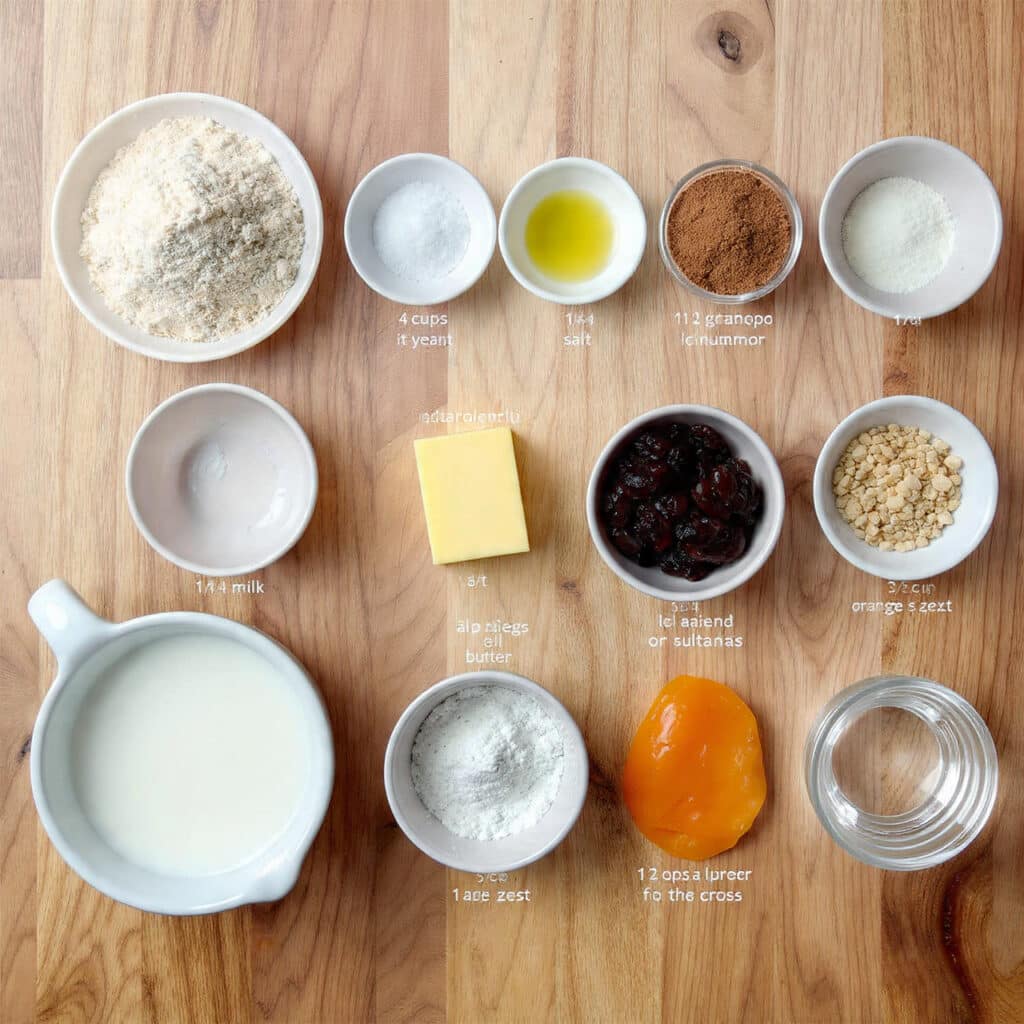 - Water (for cross): ¼ cup. Mixed with flour to form the cross paste.