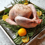 Want your turkey to steal the show? Once thawed, pat it dry completely and let it sit uncovered in the fridge for a few hours. This helps dry the skin, which makes it extra crispy during roasting. Add fresh herbs, citrus slices, and whole garlic cloves inside the cavity for a burst of aroma when it comes out of the oven. Garnish the platter with rosemary sprigs and orange wedges to wow your guests.