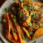If you’re craving something cozy, hearty, and packed with flavor, this Indian Spiced Chicken with Sweet Potatoes is about to become your new favorite. The golden spice crust, the sweetness of the roasted potatoes, and the warm aroma of garlic and ginger floating through your kitchen — it’s like a warm hug from the inside out. The kind of dish that makes you want to gather around the table and savor every bite.