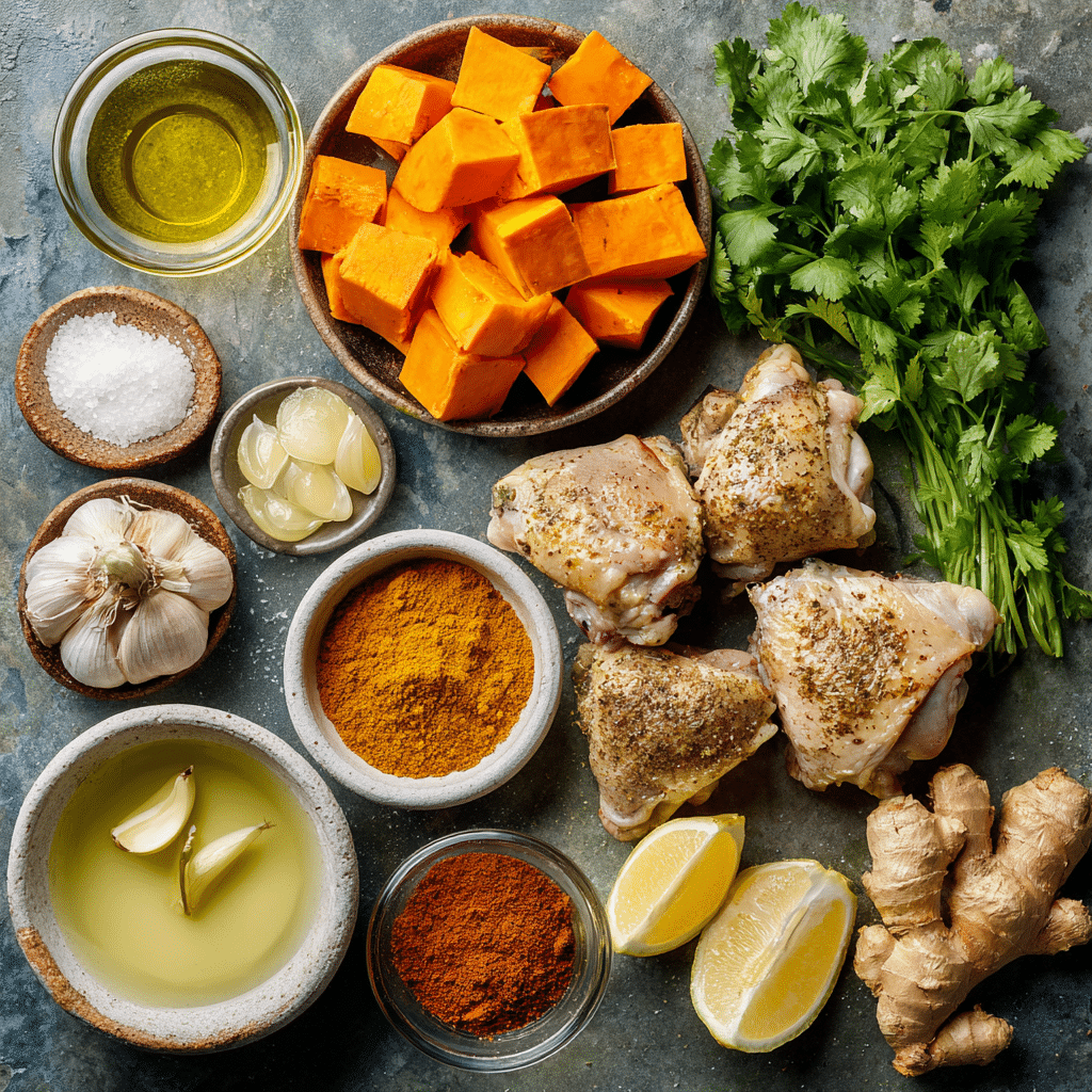 Ingredients in Indian Spiced Chicken with Sweet Potatoes