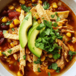 What makes this soup sing is the blend of textures and layers of flavor. The shredded chicken soaks up the seasoned broth, the beans add a soft heartiness, and the sweet corn brings bursts of balance. The crispy tortilla strips contrast with the silky avocado, creating a bite that’s both comforting and exciting.
