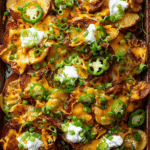 Crispy potato rounds loaded with melty cheddar cheese, tangy jalapeños, creamy sour cream, and fresh green onions — these Irish Nachos are the ultimate comfort food-meets-pub snack.